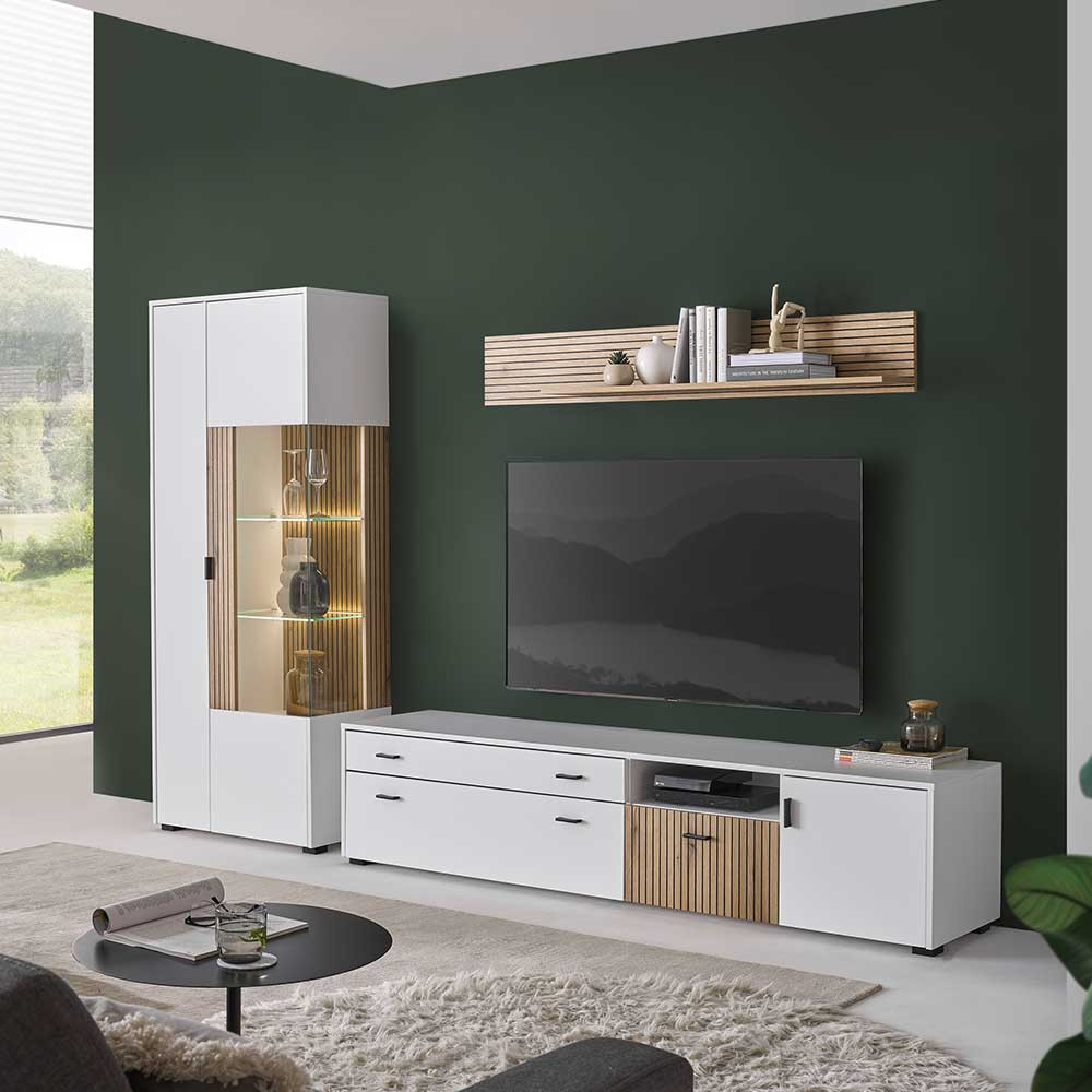 Wohnwand Weiß Loveno 61 - Wotaneiche Nb. With Regard To Wohnwand Weiß